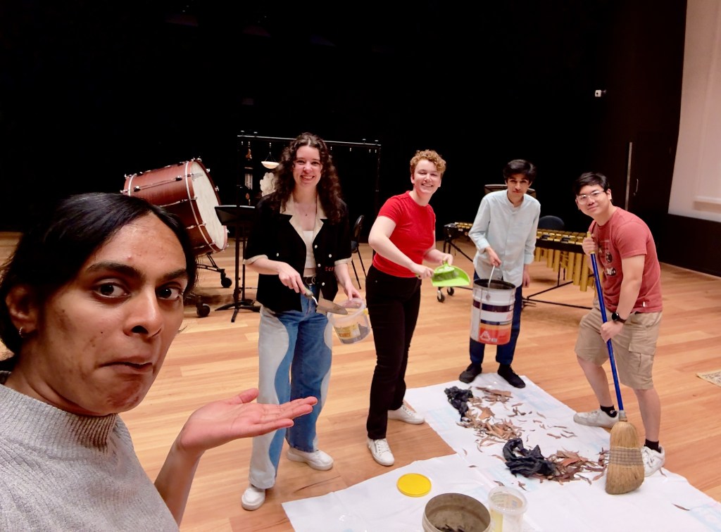 - Performed by WHACKollective ft Grace James – Bridget Bourne (marimba, shovel + soil, garden pot), Aditya Ryan Bhat (vibraphone, woodblock, bowed marimba), Justin Zheng (drumkit, sweeping leaves), and Grace James (chimes, glock, concert bass drum).